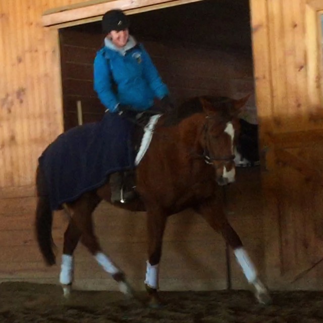 I couldnt do too much more in the canter since our ring is still partially frozen limiting to me about half the ring, so I decided to leave that where it was and tell Tillie what a good girl she was and ask for some stretchy trot both ways. I tried to make sure I was sitting tall and not trying to stretch for her by leaning which would only put her on the forehand.