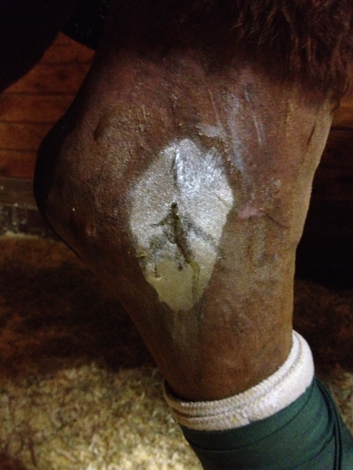 So I would go every day before work at 4am to rewrap it and administer meds to make sure she ate them and again after work to cold horse or sweat the limb, hand walk her and then turn her out while I cleaned her stall and set it up for the next 24 hours.